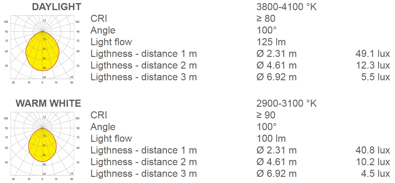 | TED C | 暖白2900-3100K | 100 lm | 9010白色 |